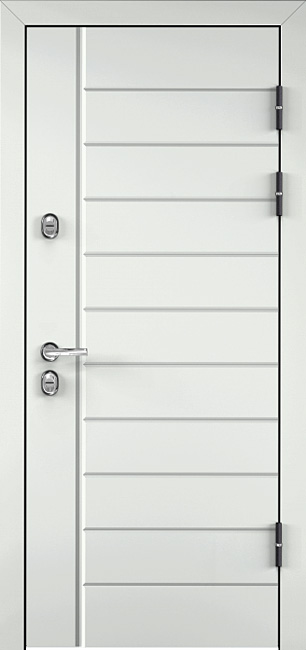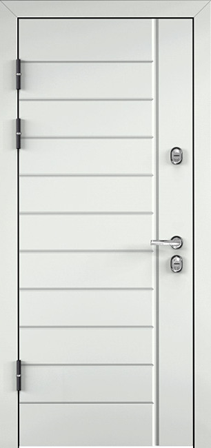 Эта белоснежная входная дверь с линиями №30 станет стильным и надежным элементом для любого интерьера. Благодаря отделке из панелей МДФ с ПВХ-покрытием, дверь выглядит элегантно и обладает высокой устойчивостью к внешним повреждениям. Внешний вид дверного полотна дополнен утонченными линиями, что придает ей современный, лаконичный вид. Прочный каркас из профильных труб 50х25 мм и лист металла толщиной 2 мм обеспечивают отличную защиту и долгий срок службы. Два контура резинового уплотнителя эффективно защищают от шума и холода, создавая комфорт в помещении. Замки Просам и Мосрентген с тремя ригелями гарантируют надежную безопасность. Дополнительно можно заказать зеркала, стеклопакеты и кованые элементы, что делает дверь универсальной для разных дизайнерских решений. Квартирная дверь входная белоснежного цвета с линиями №30 от производителя: быстрое изготовление и монтаж в Дмитрове, индивидуальные размеры, широкий выбор материалов и фурнитуры, официальная гарантия до 10 лет.