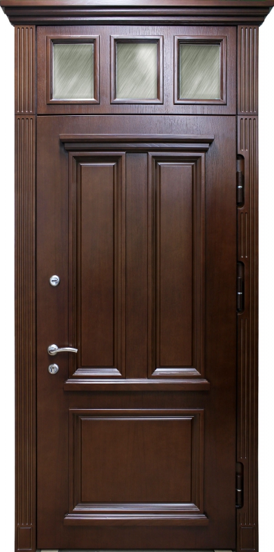 Дверь с сувальдным замком и фрамугой №34 идеально сочетает в себе стиль и надежность. Панель из натурального дерева, использованная как для внешней, так и для внутренней отделки, придает двери благородный и элегантный вид, делая её отличным выбором для помещений с классическим или современным интерьером. Каркас двери выполнен из профильной трубы 50х25 мм и усилен ребрами жесткости, что гарантирует прочность конструкции. Замки от производителей "Просам" и "Мосрентген" с тремя ригелями обеспечивают высокий уровень безопасности. Дверь оснащена уплотнителями с двумя контурами, что гарантирует отличную герметичность, а возможность замены замков и добавления кованых элементов делает её адаптируемой под любые требования. Кроме того, дверь можно дополнить зеркалом, стеклопакетом или видеодомофоном для еще большего комфорта. Входная дверь с сувальдным замком и фрамугой №34 от производителя: быстрое изготовление и монтаж в Дмитрове, индивидуальные размеры, широкий выбор материалов и фурнитуры, официальная гарантия до 10 лет.