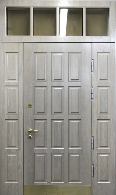 Входная дверь с остекленной фрамугой №1 привлекает внимание благодаря стильному и современному дизайну. Ее внешняя и внутренняя отделка из МДФ выглядит элегантно и долговечно, а также устойчива к механическим повреждениям, таким как царапины и вмятины. Каркас из профильной трубы и металл толщиной 2 мм гарантируют прочность и надежность. Наличие фрамуги позволяет создать эффектное освещение и визуально расширяет пространство, при этом сохранение теплоизоляции обеспечено двумя контурами резинового уплотнителя. Блокираторы и качественные замки, такие как Просам и Мосрентген, надежно защищают от взлома. Возможность дополнить дверь стеклопакетом, зеркалом или коваными элементами делает эту модель еще более универсальной для различных интерьеров. Входная дверь с остекленной фрамугой №1 от производителя: быстрое изготовление и монтаж в Дмитрове, индивидуальные размеры, широкий выбор материалов и фурнитуры, официальная гарантия до 10 лет.