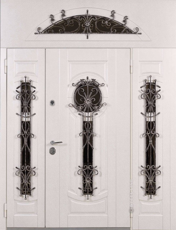 Входная дверь с кованой ручкой и фрамугой №6 представляет собой элегантное и надежное решение для тех, кто ценит не только безопасность, но и стиль. Эта модель идеально подойдет для оформления парадных входов в дома и офисы. Внешняя отделка из плиты МДФ придает двери современный и чистый вид, который сохраняется долго благодаря стойкости к внешним воздействиям. Благодаря профильной трубе с толщиной металла 2 мм и ребрам жесткости, конструкция двери гарантирует прочность и долговечность. Дополнительный элемент — кованая ручка, которая добавляет изысканности и подчеркивает высокий класс изделия. Стандартная комплектация не включает шумо- и теплоизоляцию, однако она может быть установлена по желанию. Резиновый уплотнитель с двумя контурами обеспечит хорошую герметичность, защищая от ветра и пыли. Подходит для установки как в частных домах, так и в офисах, привлекая внимание своим необычным и стильным дизайном. Входная дверь с кованой ручкой и фрамугой №6 от производителя: быстрое изготовление и монтаж в Дмитрове, индивидуальные размеры, широкий выбор материалов и фурнитуры, официальная гарантия до 10 лет.