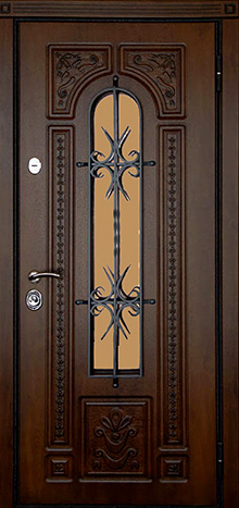 Входная дверь с ковкой и стеклом в частный дом №14 создана для тех, кто ценит практичность и эстетику в равной степени. Каркас из профильной трубы и стальной лист толщиной 2 мм отвечают за надежность и устойчивость, а декоративное остекление с коваными элементами делает вход в дом более светлым и выразительным. Отделка панелями МДФ с ПВХ-покрытием защищает поверхность от влаги, перепадов температуры и мелких повреждений, позволяя двери сохранять презентабельный вид долгие годы. Два контура уплотнения обеспечивают защиту от сквозняков, а при необходимости можно дополнить конструкцию дополнительной шумо- и теплоизоляцией. Входная дверь с ковкой и стеклом в частный дом №14 может изготавливаться в любых размерах и с любым направлением открывания, а также комплектоваться современными замками или дополнительными декоративными элементами, подчеркивающими индивидуальность фасада. Входная дверь с ковкой и стеклом в частный дом №14 от производителя: быстрое изготовление и монтаж в Дмитрове, индивидуальные размеры, широкий выбор материалов и фурнитуры, официальная гарантия до 10 лет.