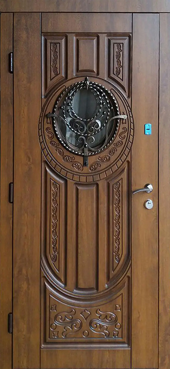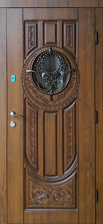 Владельцы коттеджей ценят входные конструкции, которые одинаково подчеркивают статус и защищают от любых внешних факторов. Здесь удачно сочетаются прочный металл и массив дуба, придающий поверхности солидность и благородство. Натуральное дерево сохраняет цвет и текстуру долгие годы, устойчиво к механическим повреждениям и перепадам температуры. Внутри конструкции скрыт стальной каркас толщиной 1,5 мм с ребрами жесткости и противосъёмными блокираторами, что делает полотно практически неприступным. Особое преимущество — терморазрыв коробки и полотна, благодаря которому дверь не промерзает даже в сильные морозы и сохраняет тепло в доме. Именно на этом контрасте надежности и эстетики выделяется железная дверь со стеклом и ковкой №21, украшенная изящными декоративными элементами. Три контура магнитного уплотнения обеспечивают герметичность, а система замков Kale Kilit повышает уровень безопасности, при этом конструкция допускает установку современных умных решений и дополнительных декоративных опций. Железная дверь со стеклом и ковкой №21 от производителя: быстрое изготовление и монтаж в Дмитрове, индивидуальные размеры, широкий выбор материалов и фурнитуры, официальная гарантия до 10 лет.