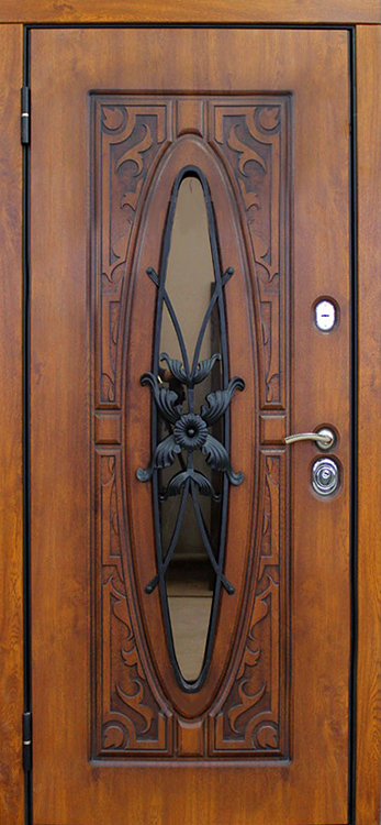 В частном доме дверь должна быть не просто барьером, а настоящей визитной карточкой, и именно эту задачу решает входная дверь со стеклом и ковкой №23. Натуральное дерево в отделке придает ей благородный и теплый вид, а декоративная ковка превращает конструкцию в выразительный элемент архитектуры. Внутри скрыт стальной каркас с листом металла 1,5 мм и противосъёмными блокираторами, что обеспечивает прочность и устойчивость к взлому. Особого внимания заслуживает наличие терморазрыва как в коробке, так и в полотне: он защищает от промерзания, исключает появление конденсата и помогает сохранять тепло зимой и прохладу летом. Тройной контур магнитного уплотнения усиливает герметичность и снижает уровень уличного шума, а пенопласт повышенной плотности в качестве наполнителя добавляет теплоизоляции. Входная дверь в частный дом со стеклом и ковкой №23 гармонично сочетает надежность и эстетику, позволяя владельцу адаптировать её под стиль фасада с помощью дополнительных декоративных решений. Входная дверь в частный дом со стеклом и ковкой №23 от производителя: быстрое изготовление и монтаж в Дмитрове, индивидуальные размеры, широкий выбор материалов и фурнитуры, официальная гарантия до 10 лет.