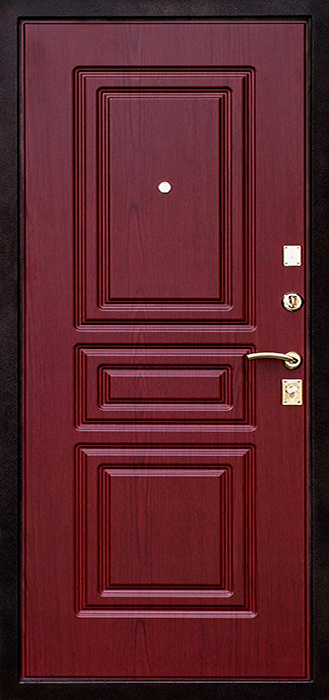 Строгая, практичная и надёжная конструкция делает эту модель удобной для установки в квартире или офисе, где важны защита и долговечность. Каркас и полотно выполнены из профильной трубы, усилены стальным листом толщиной 2 мм и ребрами жёсткости, что обеспечивает устойчивость к нагрузкам и попыткам взлома. Снаружи дверь облицована ламинированными панелями, сохраняющими аккуратный вид даже при интенсивной эксплуатации, внутри — МДФ со шпоном, создающим ощущение уюта и солидности. Два контура уплотнителей защищают от сквозняков, при желании можно добавить шумо- и теплоизоляцию для большего комфорта. Дверь стальная с отделкой ламинат №7 укомплектована двумя надёжными замками российского производства, а при необходимости их легко заменить на более современные механические или электронные системы. Дверь стальная с отделкой ламинат №7 от производителя: быстрое изготовление и монтаж в Дмитрове, индивидуальные размеры, широкий выбор материалов и фурнитуры, официальная гарантия до 10 лет.