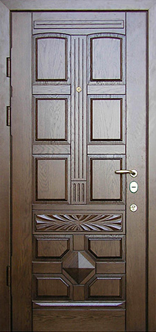 Красивая шпонированная дверь с надежной фурнитурой и ковкой "лоза" №33