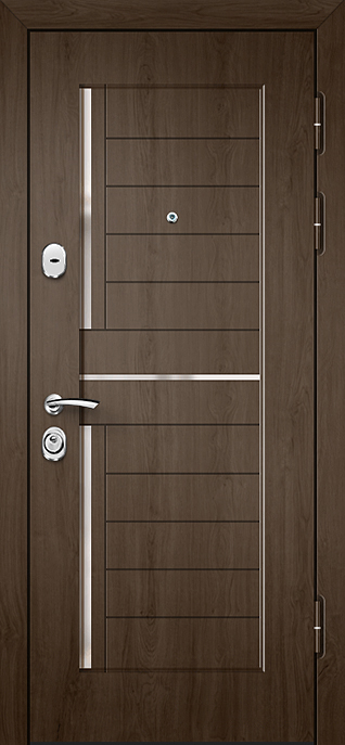 Глубокий оттенок венге всегда выглядит благородно и современно, а декоративная панель придаёт полотну завершённый стильный образ. Дверь МДФ цвета венге с внешней декоративной панелью №538 подходит для установки как в частных домах, так и в квартирах или офисах, где ценят сочетание надёжности и эстетики. Плиты МДФ отличаются прочностью, стойкостью к мелким механическим повреждениям и долго сохраняют первоначальный вид без потери насыщенности цвета. Конструкция выполнена на основе стального каркаса с листом металла толщиной 2 мм и рёбрами жёсткости, что обеспечивает высокий уровень прочности. Два контура уплотнения повышают комфорт эксплуатации, защищая от сквозняков. Дополнительно дверь можно оснастить шумо- и теплоизоляцией, зеркалом, стеклопакетом или коваными элементами, сделав её не только практичной, но и индивидуальной деталью интерьера. Дверь МДФ цвета венге с внешней декоративной панелью №538 от производителя: быстрое изготовление и монтаж в Дмитрове, индивидуальные размеры, широкий выбор материалов и фурнитуры, официальная гарантия до 10 лет.