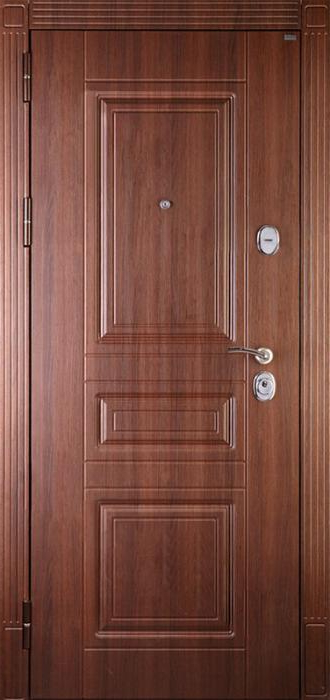 Дверь уличная с терморазрывом в частный дом №44 – отличное решение для коттеджей и частных домов, где важны не только безопасность, но и теплоизоляция. Технология терморазрыва в коробке и полотне эффективно удерживает тепло внутри и предотвращает образование конденсата. Внешняя и внутренняя отделка из панелей МДФ с ПВХ покрытием придают двери современный вид и обеспечивают устойчивость к внешним воздействиям, таким как механические повреждения и изменения температуры. Конструкция из металла толщиной 1,5 мм с усилением профильными трубами 40x25 мм делает дверь прочной и надежной. Шумоизоляция из пенопласта повышенной плотности дополнительно защищает от внешнего шума. Замки Kale Kilit с тремя ригелями обеспечат высокую степень безопасности вашего дома. Дверь уличная с терморазрывом в частный дом №44 от производителя: быстрое изготовление и монтаж в Дмитрове, индивидуальные размеры, широкий выбор материалов и фурнитуры, официальная гарантия до 10 лет.