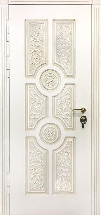 Дверь уличная с терморазрывом №49 — это надежное решение для частных домов и коттеджей, которое обеспечит комфорт и защиту от внешних факторов. С терморазрывом в коробке и полотне, эта дверь исключает проникновение холода, сохраняя тепло в доме и предотвращая появление конденсата. Внешняя и внутренняя отделка выполнена с использованием накладки МДФ, что придает двери привлекательный вид и долговечность, стойкость к механическим повреждениям и атмосферным воздействиям. Ковка, как элемент декора, добавляет изысканности и подчеркивает индивидуальность. Металлическая конструкция с толщиной полотна 1,5 мм и каркасом из профильных труб гарантирует прочность и устойчивость. Уплотнение с тремя контурами магнитного герметика и высокая шумо- и теплоизоляция на основе пенопласта делают дверь идеальной для использования в уличных условиях. Возможность замены замков и добавления стеклопакетов или кованых элементов позволяет индивидуализировать дверное решение под любые потребности. Дверь уличная с терморазрывом №49 от производителя: быстрое изготовление и монтаж в Дмитрове, индивидуальные размеры, широкий выбор материалов и фурнитуры, официальная гарантия до 10 лет.