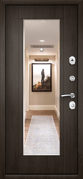 Сочетание зеркала и металла в одном изделии делает эту модель особенно удобной для современных интерьеров. Дверь входная металлическая с зеркалом внутри №46 предназначена для установки в квартиры, офисы и частные дома, где важна не только защита, но и комфорт использования. Внутреннее зеркало избавляет от необходимости дополнительных предметов мебели, экономя место и визуально расширяя пространство. Каркас собран из профильной трубы и усилен рёбрами жёсткости, а стальной лист толщиной 2 мм надёжно противостоит механическим нагрузкам. Накладки МДФ служат практичным и долговечным решением: они устойчивы к царапинам, не теряют внешней привлекательности и легко поддаются уходу. Два контура резинового уплотнителя уменьшают проникновение шума и сквозняков, а возможность комбинировать отделку позволяет подобрать исполнение под любой интерьер. Дверь входная металлическая с зеркалом внутри №46 от производителя: быстрое изготовление и монтаж в Дмитрове, индивидуальные размеры, широкий выбор материалов и фурнитуры, официальная гарантия до 10 лет.
