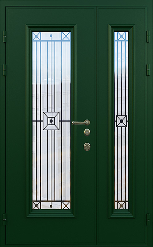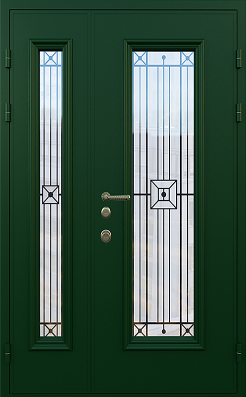 Зеленая полуторная дверь со стеклопакетом для частного дома №18 — это идеальный выбор для тех, кто хочет добавить в свой дом надежность и стиль. Элементы декора, такие как багет и ковка, придают двери элегантный вид, который идеально гармонирует с фасадом загородного дома. Панели МДФ с ПВХ-покрытием, использованные для внешней и внутренней отделки, обеспечивают высокую стойкость к механическим повреждениям и внешним воздействиям, сохраняя прекрасный внешний вид на долгое время. Зеленая полуторная дверь со стеклопакетом для частного дома №18 от производителя: быстрое изготовление и монтаж в Дмитрове, индивидуальные размеры, широкий выбор материалов и фурнитуры, официальная гарантия до 10 лет.