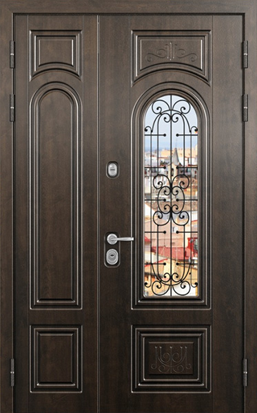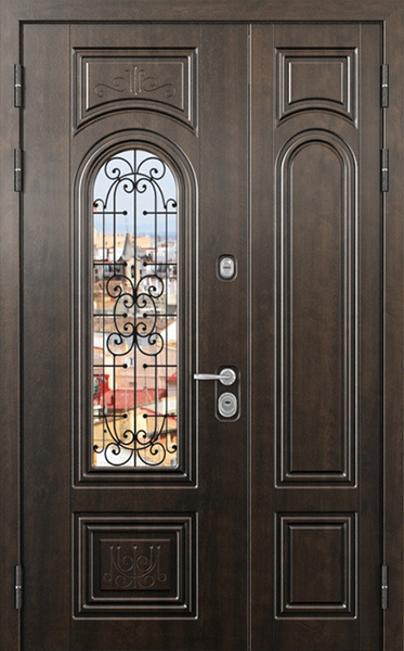 Двупольная стальная дверь со стеклопакетом и кованым узором №24 станет отличным выбором для тех, кто ценит не только безопасность, но и стиль. Внешняя и внутренняя отделка выполнены из МДФ, что придает двери элегантный и современный вид, а также обеспечивает высокую устойчивость к механическим повреждениям и износу. Стеклопакет и кованые элементы добавляют изысканности и уникальности, при этом сохраняя прочность конструкции. Двупольная стальная дверь со стеклопакетом и кованым узором №24 от производителя: быстрое изготовление и монтаж в Дмитрове, индивидуальные размеры, широкий выбор материалов и фурнитуры, официальная гарантия до 10 лет.