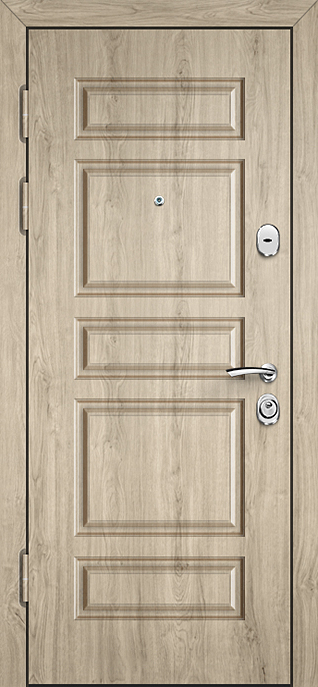 Входная дверь с ручками и замками высокого класса защиты №36 станет надежным выбором для вашего частного дома, квартиры или офиса. Конструкция из профильной трубы 50х25 мм и листа металла толщиной 2 мм обеспечивает высокую прочность и стойкость к внешним воздействиям. Ребра жесткости из труб 40х25 мм усиливают конструкцию, делая дверь устойчивой к деформации. Внешняя отделка с порошковой окраской не только придает дверям элегантный вид, но и обеспечивает стойкость к механическим повреждениям и атмосферным воздействиям. Внутренняя отделка из плиты МДФ дарит тепло и уют. Резиновый уплотнитель с двумя контурами гарантирует отличную герметичность. Для дополнительной безопасности предусмотрены блокираторы и замки высокого класса защиты. Благодаря терморазрыву в коробке и полотне, дверь эффективно защищает от перепадов температуры, обеспечивая комфорт в помещении. Входная дверь с ручками и замками высокого класса защиты №36 от производителя: быстрое изготовление и монтаж в Дмитрове, индивидуальные размеры, широкий выбор материалов и фурнитуры, официальная гарантия до 10 лет.