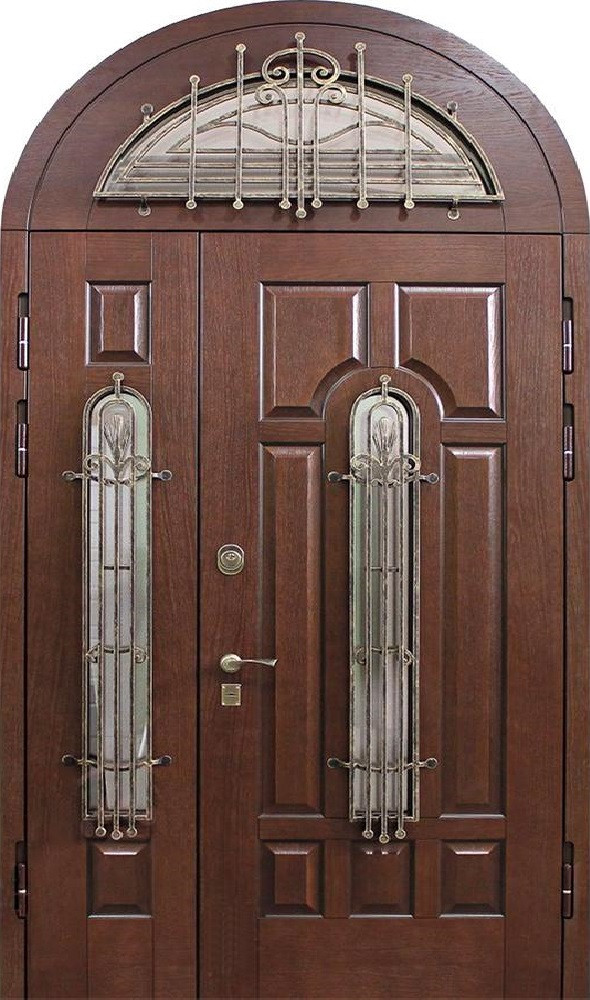 Арочная входная дверь с витражом в частный дом №69