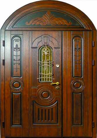 Арочная входная дверь с витражом в частный дом №69