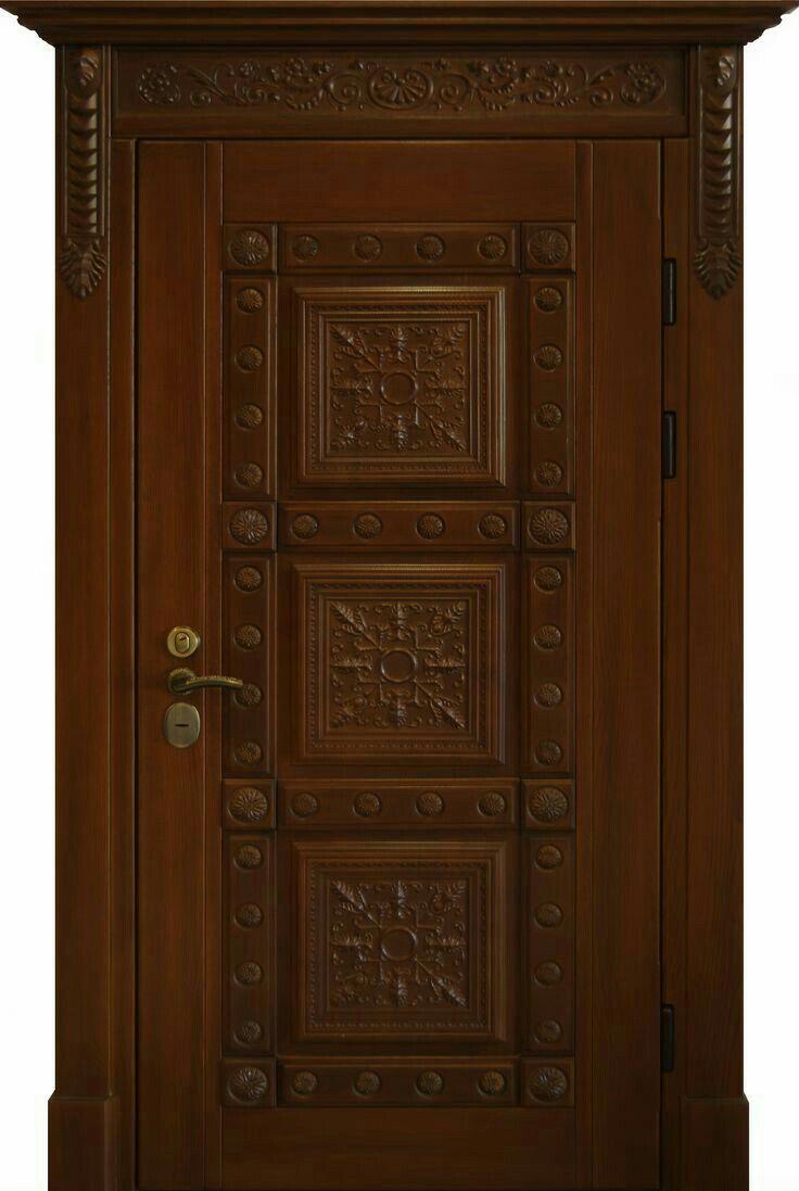 Эксклюзивная глянцевая дверь в частный дом с нестандартной фрезеровкой №24