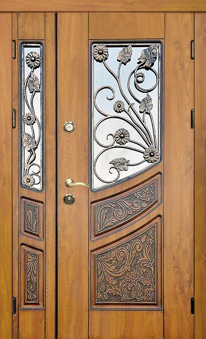 Дверь со стеклопакетом входная №411 создана для тех, кто ценит надежность и одновременно хочет подчеркнуть стиль фасада своего дома. Прочный стальной каркас из профильной трубы с листом металла толщиной 2 мм и системой ребер жесткости гарантирует долговечность и защиту от внешних воздействий. Панели из натурального дерева с обеих сторон придают полотну благородный облик, устойчивый к царапинам и погодным перепадам, сохраняя первоначальный вид долгие годы. Стеклопакет не только украшает дверь, но и наполняет прихожую естественным светом, создавая уют и ощущение открытости. Два контура уплотнителей предотвращают сквозняки и влагу, а встроенные блокираторы усиливают защитные функции. Такая модель удачно совмещает декоративность и практичность, делая парадный вход в коттедж или частный дом одновременно безопасным и выразительным. Дверь со стеклопакетом входная №411 от производителя: быстрое изготовление и монтаж в Дмитрове, индивидуальные размеры, широкий выбор материалов и фурнитуры, официальная гарантия до 10 лет.