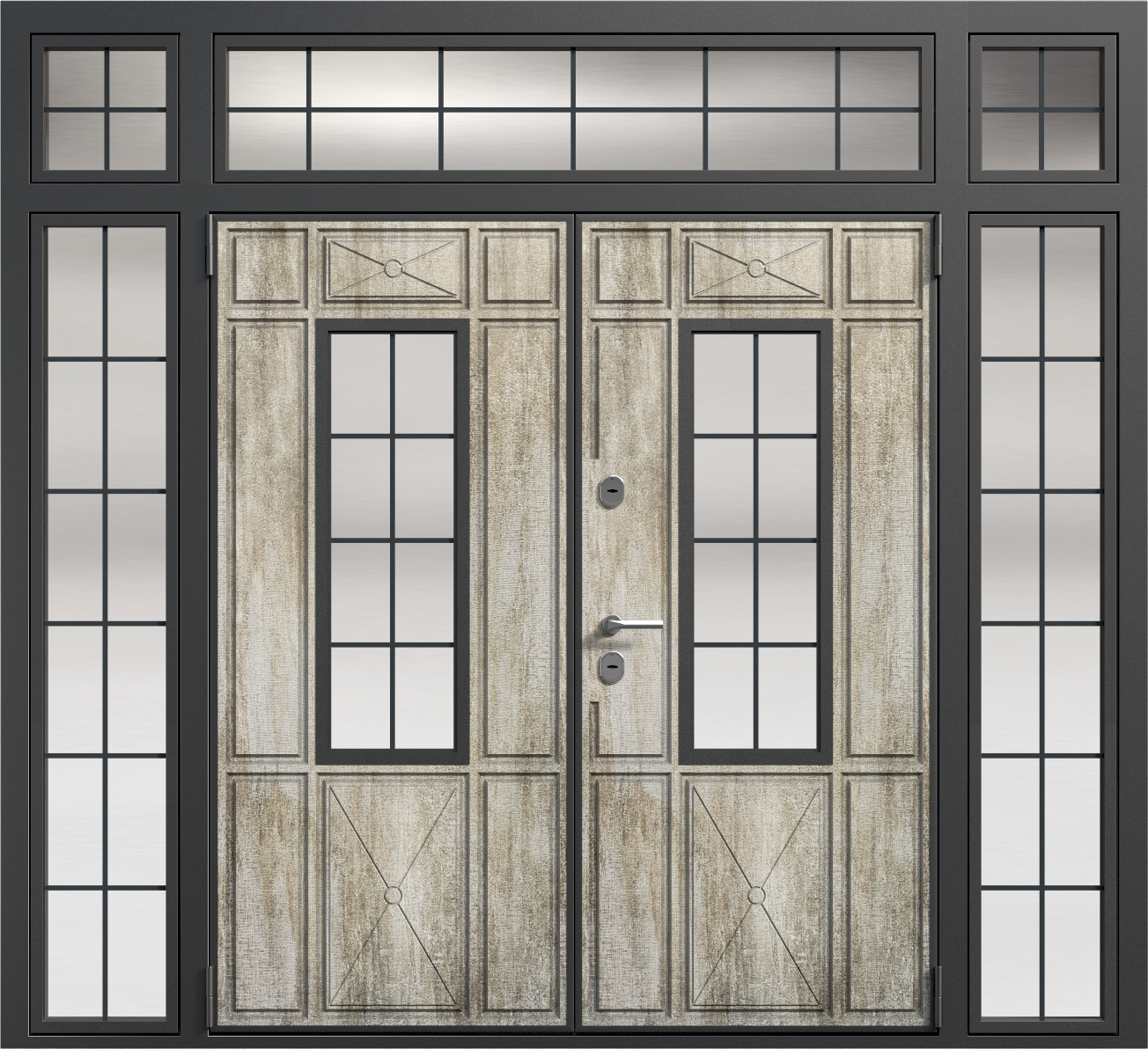 Парадная дверь с остекленной фрамугой №6 — это идеальный выбор для тех, кто ценит элегантность и функциональность. Внешняя отделка из панелей МДФ ПВХ обеспечивает долговечность и устойчивость к внешним воздействиям, что делает эту модель подходящей как для частных домов, так и для офисных помещений. Прочная конструкция с каркасом из профильной трубы 50x25 мм и листом металла толщиной 2 мм гарантирует долговечность и высокую безопасность. Замки Kale Kilit с тремя ригелями обеспечат надежную защиту, а уплотнение с двумя контурами эффективно защитит от шума и холода. Дополнительные элементы, такие как стеклопакеты, зеркала или кованые элементы, можно добавить по вашему желанию, позволяя адаптировать дверь под любые требования. Парадная дверь с остекленной фрамугой №6 от производителя: быстрое изготовление и монтаж в Дмитрове, индивидуальные размеры, широкий выбор материалов и фурнитуры, официальная гарантия до 10 лет.
