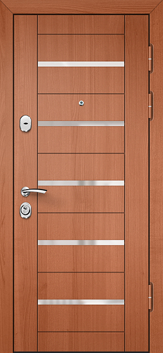 Современная входная дверь с цилиндровым замком №21 сочетает строгую надежность металлической конструкции и аккуратный внешний вид. Каркас из профильной трубы и лист стали толщиной 2 мм образуют прочный щит, усиленный ребрами жесткости и блокираторами. Накладки из МДФ придают полотну более «домашний» облик: материал не только эстетичен, но и практичен — ПВХ-покрытие стойко переносит небольшие повреждения и сохраняет первозданный вид долгие годы. Такая дверь подходит для квартиры, офиса или частного дома, где важно совместить защиту и стиль. Цилиндровый замок обеспечивает удобное и надежное закрывание, а два контура резинового уплотнителя защищают от сквозняков и лишнего шума. При желании возможно дополнить конструкцию тепло- и шумоизоляцией или установить замки другого типа, включая современные электронные системы. Современная входная дверь с цилиндровым замком №21 от производителя: быстрое изготовление и монтаж в Дмитрове, индивидуальные размеры, широкий выбор материалов и фурнитуры, официальная гарантия до 10 лет.
