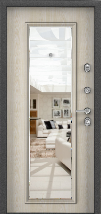 Сочетание прочной конструкции и декоративных решений делает эту модель особенно практичной для частного дома или квартиры. Каркас и полотно выполнены из профильной трубы с листом стали толщиной 2 мм, усиленные рёбрами жёсткости и блокираторами, что обеспечивает высокую надёжность. Два контура резинового уплотнителя препятствуют проникновению влаги и сквозняков, а порошковое напыление на внешней поверхности защищает металл от коррозии и сохраняет аккуратный вид даже при воздействии осадков и солнечного света. Внутренняя отделка панелями МДФ ПВХ создаёт уютный интерьерный акцент и устойчива к повседневным нагрузкам. Дверь входная металлическая уличная в дом №12 дополнена зеркалом, которое делает её не только функциональной, но и более удобной в быту. Для безопасности предусмотрены два замка российского производства — сувальдный Просам и цилиндровый Мосрентген, каждый с тремя ригелями. Дополнительно дверь можно оснастить стеклопакетом или коваными элементами, превратив её в индивидуальное решение для конкретных задач. Дверь входная металлическая уличная в дом №12 от производителя: быстрое изготовление и монтаж в Дмитрове, индивидуальные размеры, широкий выбор материалов и фурнитуры, официальная гарантия до 10 лет.